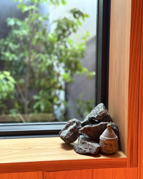 南エリアのサウナ棟(Maaperää)には、HUKKA DESEIN(フッカ デザイン)製のフィンランドで採掘されたカレリアンソープストーンで作られた「トントゥ」がいます。