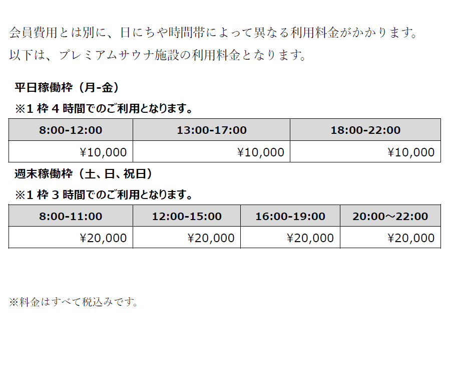・時間内であれば自由にプレミアムサウナ施設内に出入りできます。