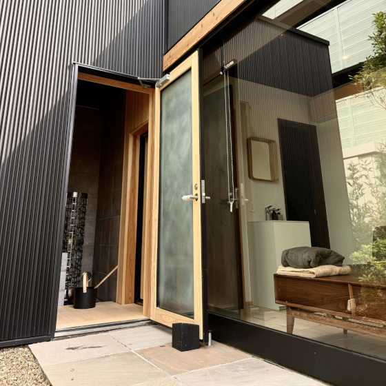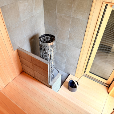 フィンランド・スタイルの自然あふれるサウナ施設を目指して設計されたスペースです。一般サウナエリアに隣接した約100平米のプライベートな施設内には多種多様な樹木が植えられています。木々に囲まれた野外環境のなかで外気浴をしながら、より自然と一体化したサウナ体験を楽しんでいただけます。