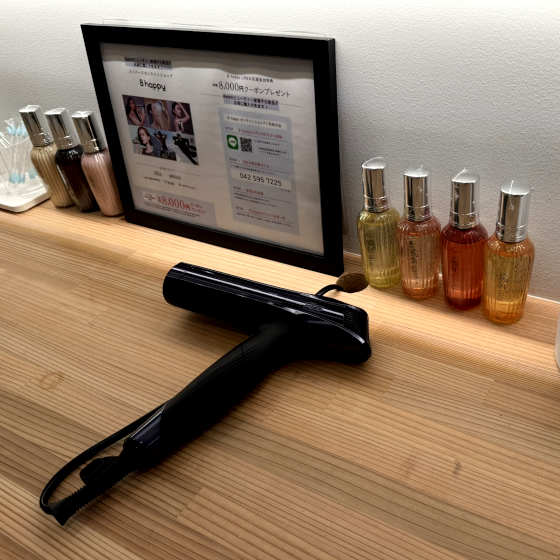 またドライヤーと一緒にRefa製のヘアアイロンも置いてあります。さらにリファのLock Oilを7種類置いてありますので、髪の質や目的に合わせてご自身のヘアスタイリングをお楽しみください。